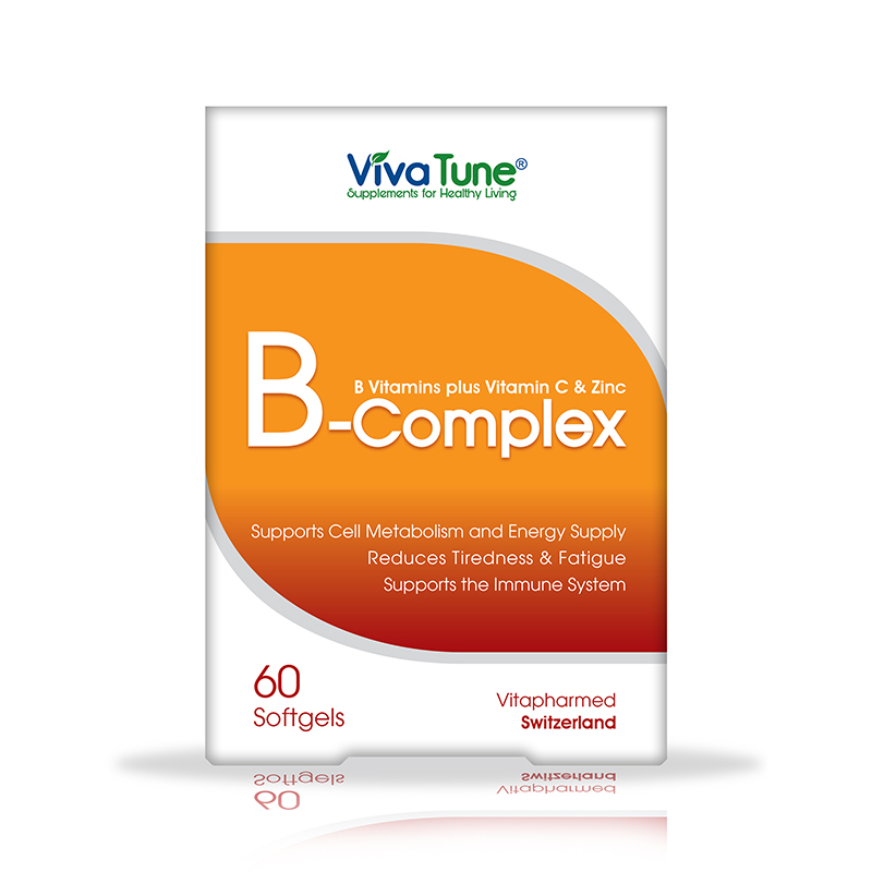 Viva Tune B-Complex is a dietary supplement that delivers all eight of B vitamins: B1 (Thiamine), B2 (Riboflavin), B3 (Niacin), B5 (Pantothenic acid), B6 (Pyridoxine), B7 (Biotin), B9 (Folic Acid), B12 (Cyanocobalamin) . Each Component of B-complex has a unique structure and performs unique functions in human body. Vitamins B1, B2, B3, and Biotin participate in different aspects of energy production, Vitamin B6 is essential for amino acid metabolism. Vitamin B12 and Folic acid facilitate steps required for cell division. Each of these vitamins has many additional functions. This formulation also contains vitamin E, vitamin C and Zinc as antioxidants which support Immune System and protect body from free radicals.