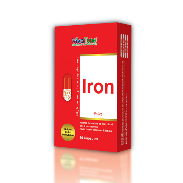 Viva Tune Iron is an iron supplement that contains the iron your body needs each day for proper functioning. Iron is a vital mineral in the human body. It generates red blood cells that carry oxygen to all parts of the body. Iron is a necessary component of hemoglobin, the oxygen carrier in the blood. Iron also helps maintain energy utilization, restore energy and vitality.