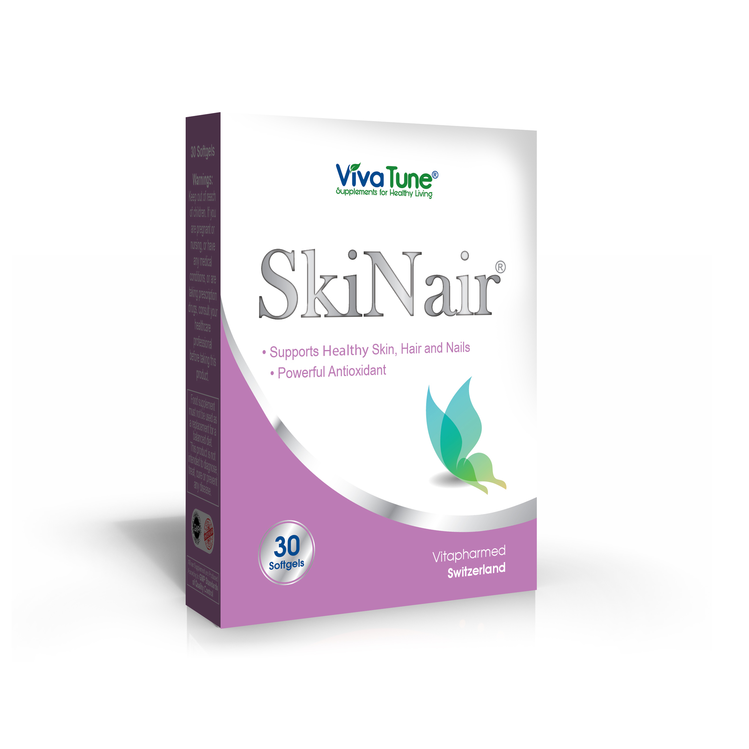 Viva Tune SkiNair Supplement improves skin elasticity and supports skin hydration and diminishes fine wrinkles and lines by elevating skin firmness.