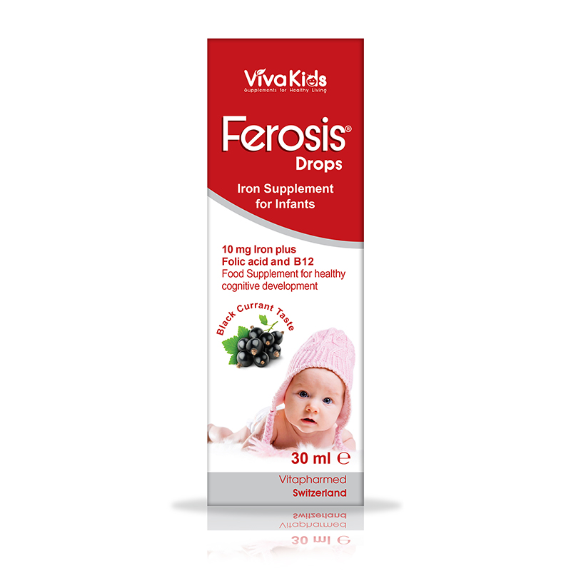 VivaKids Ferosis Drop is an iron supplement formulated to deliver an ideal amount of Iron to the body. This product provides Iron and Vitamin C for infants. Human milk contains little Iron, so infants who are exclusively breastfed are at increased risk of Iron deficiency after four months of age. One daily liquid dose provides 10 mg of elemental Iron. Iron is a vital mineral in the human body. It generates red blood cells that carry oxygen to all parts of the body. Vitamin C improves the absorption of iron from the stomach. This formula also contains folic acid and vitamin B12 which contributes normal blood cells formation. This special combination also contains Vitamins B6 and folic acid which contribute to normal energy release and reduction of tiredness and fatigue "