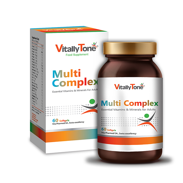 "Vitally Tone Multicomplex are a multivitamin and mineral supplement. They contain a combination of 23 essential vitamins, minerals and trace elements. The human body requires a wide variety of vitamins, minerals and trace elements to perform crucial daily tasks such as releasing energy from food and repairing cell damage. During certain illnesses, your body either cannot get or cannot efficiently use all of the vitamins, minerals and trace elements it needs. Your doctor, dietician or pharmacist will give you Vitally Tone Multicomplex if your diet has not provided you with enough vitamins, minerals and trace elements. Each capsule contains the following 23 essential vitamins, minerals and trace elements, each of which plays a vital role in the efficient daily maintenance of many body processes. This comprehensive formula provides: • From Vitamin A to Zinc: a broad-spectrum multivitamin and mineral supplement supporting heart health, eye health, immunity and physical energy • B-group vitamins, magnesium and chromium to enhance metabolism and help maintain energy levels. • Nutrients to assist normal brain function, including Iodine and Vitamin B12. • Rich in Selenium, Zinc, Vitamins A and C to support Immune system in defending against free radicals. • Bone health support nutrients such as Vitamin K, Vitamin D and Calcium. • Biotin, Silicon, Vitamin C and other nutrients to support healthy hair, skin and nails. "