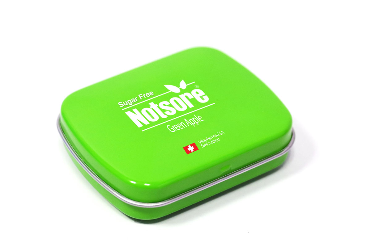 As one of the best produced sugar-free mouth fresheners, NOTSORE brand has always considered quality, innovation and market demands as main visions of business. Sugar free mouth freshener is a diabetic friendly product in designed metal tins with a wide range of flavors, including: peppermint, menthol extra strong, Lemon, Spearmint ice, Wild berry, Spearmints, Green Apple, Mango Passionfruit, Matcha Green Tea, Peach, Strawberry, Orange, Mango, Blackcurrant, Pineapple, and etc.