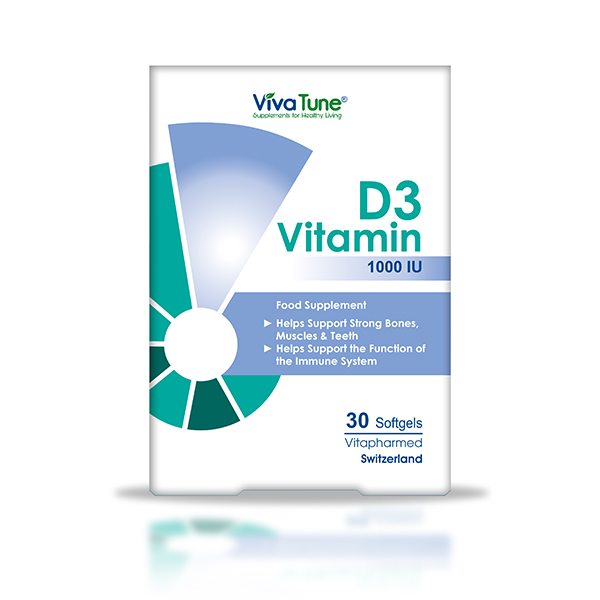 Viva Tune® Vitamin D3 (1000 IU) softgels are made of vitamin D3, the body’s preferred form of vitamin D. Vitamin D helps regulate calcium and phosphorus throughout the body. These two minerals provide a substantial amount of support for bone structure.